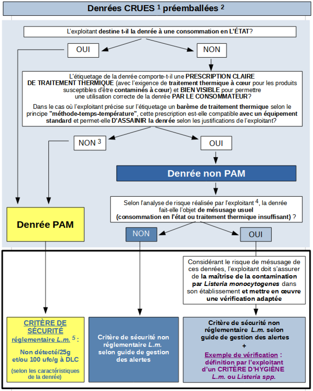 Annexe 2 : Classement en denrée PAM ou non PAM en fonction des catégories de denrées préemballées, des conditions d’utilisation raisonnablement prévisibles et des mentions portées sur leur étiquetage : incidence sur l’application des critères de sécurité Listeria monocytogenes